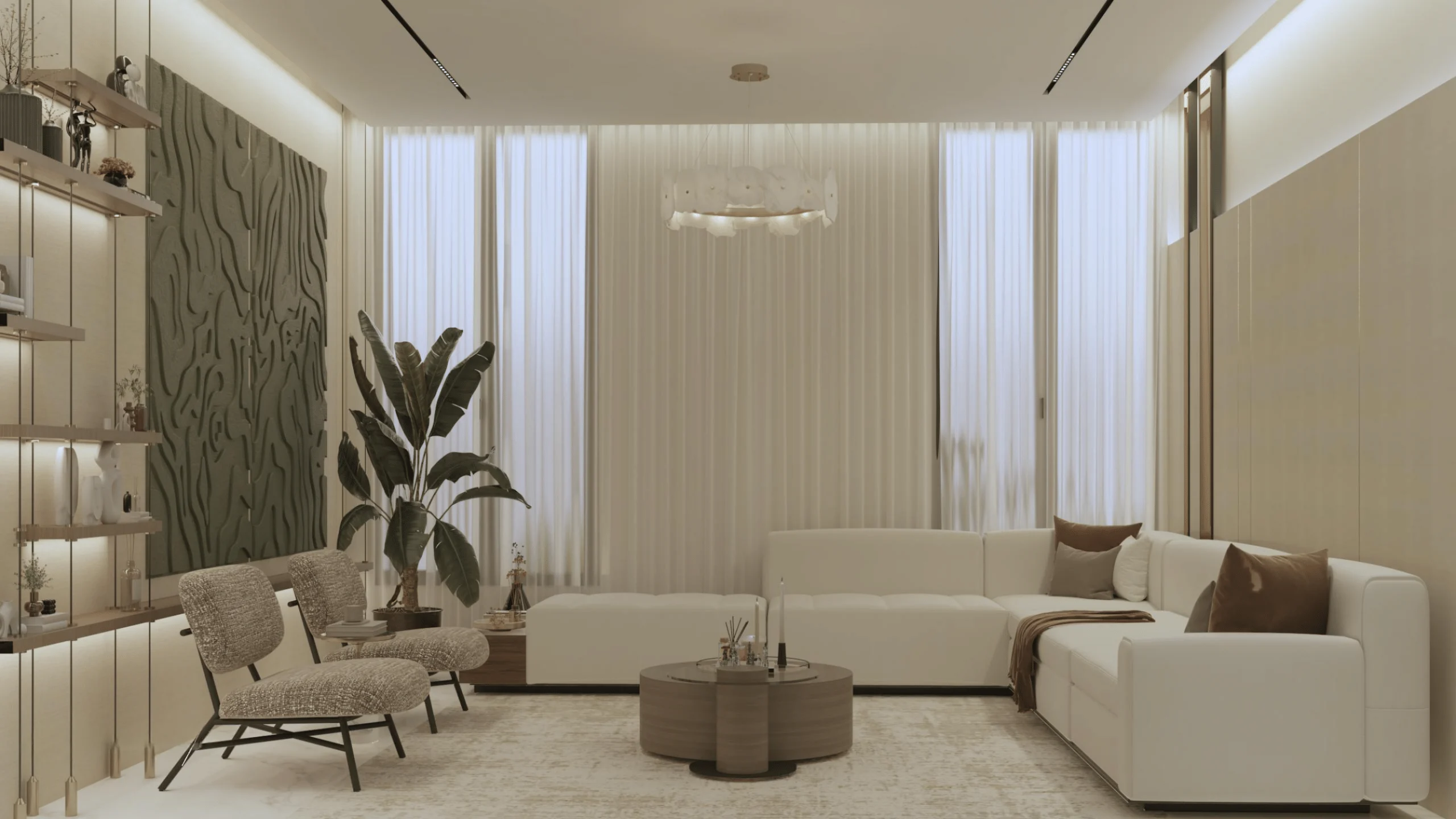 مشروع تشطيب فيلا فاخرة بمساحة ٦٤٠ متر مربع يقع في حي (الشراع) ويتميز بتصميم عصري جميل يتميز بوجوده على واجهتين يوفر إطلالات متنوعة.